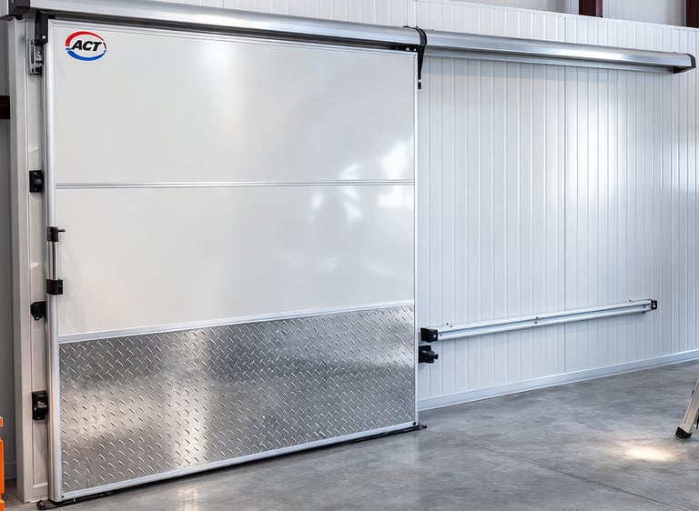 Designed for durability and smooth operation, our sliding doors are available in painted sheet metal or corrosion-resistant stainless steel. Each door is built to your exact specifications, ensuring optimal performance in both medium and low temperature environments.